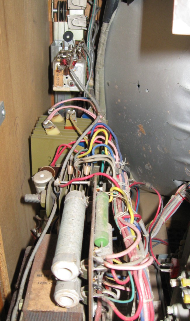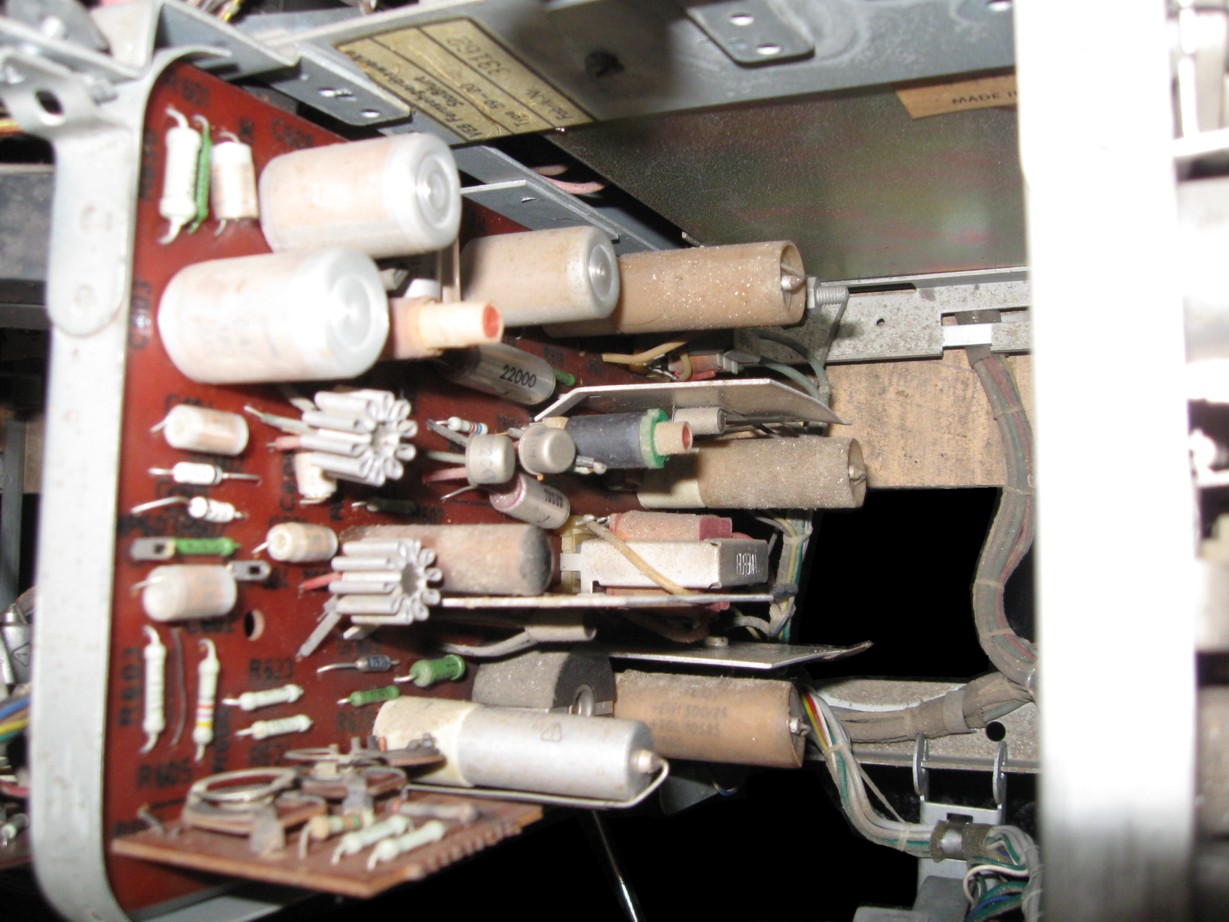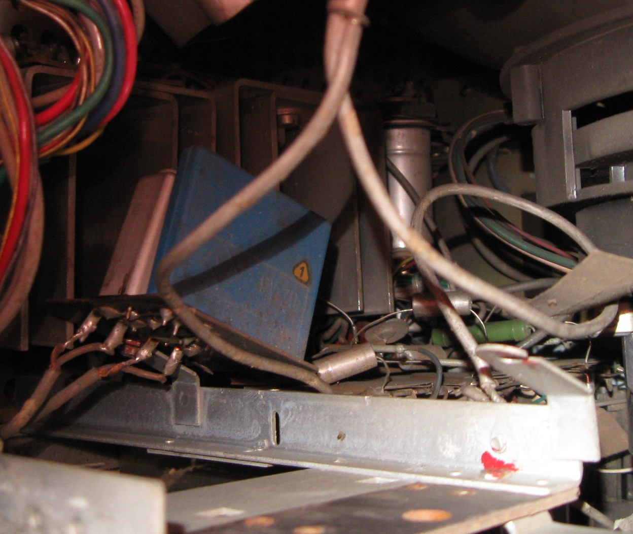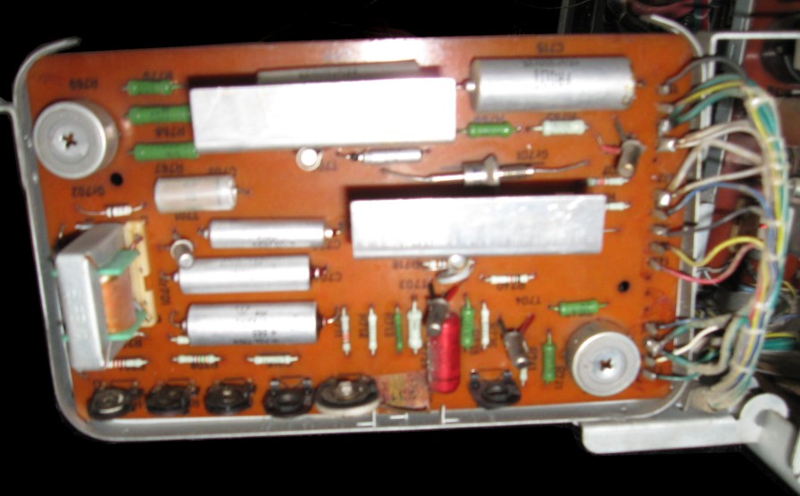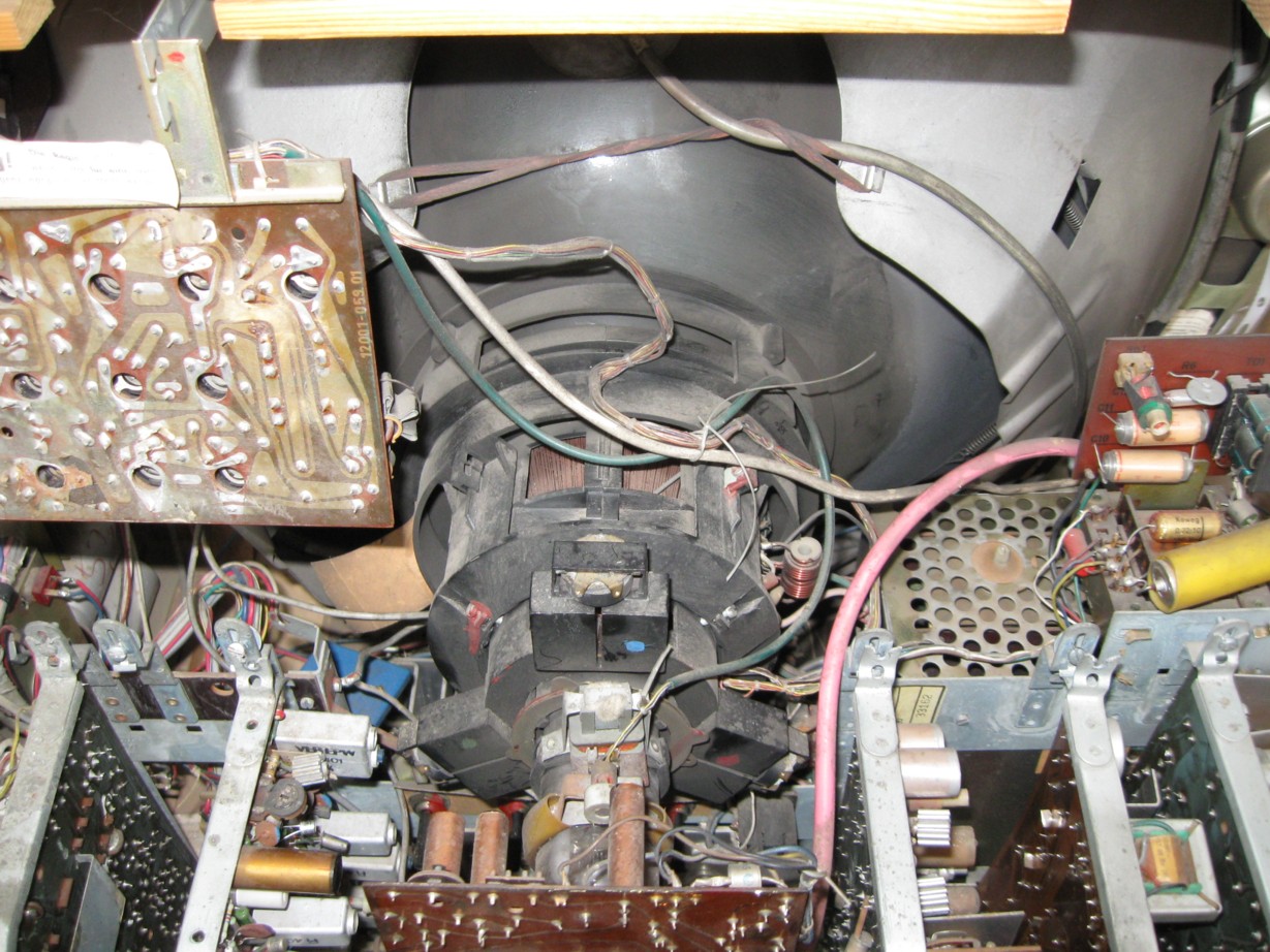 SchaltplanBanderole, Seiten, Daten, Oszillogramme, Schaltplan von 1969. Ausführliche Schaltungsbeschreibung ("R-F-T Autorenkolletiv: Farbfernsehen")Röhren59LK3Z oder A56-120X, in frühen Geräten: dreimal EY51. Warnung: Diese Webseite bietet Ihnen einen Einblick in das Innere des Gerätes. Beachten Sie bitte, dass die Entfernung von Rückwänden und Abdeckungen nur dem Fachmann vorbehalten ist. Das gilt besonders, wenn das Gerät eingesteckt ist, in Betrieb ist oder unter elektrischer Spannung steht. Verbrennungen oder gar tödliche Stromschläge können die Folge sein! Aber auch bei Netztrennung besteht die Gefahr, dass bei unsachgemäßer Vorgehensweise bösartige Stromschläge geschehen können. Insbesondere die Bildröhre und die mit ihr verbundenen Baugruppen können noch Stunden oder Tage nach der letzten Inbetriebnahme weit über 10.000 Volt Hochspannung führen. Der Autor lehnt jede Haftung für Verletzungen und Schäden, resultierend aus den hier gegebenen Informationen ab und weist ausdrücklich darauf hin, dass für den Unkundigen vor dem Öffnen von Geräten Fachleute wie Elektriker oder Elektrotechniker befragt werden müssen. Photos: © Eckhard Etzold, 2008.