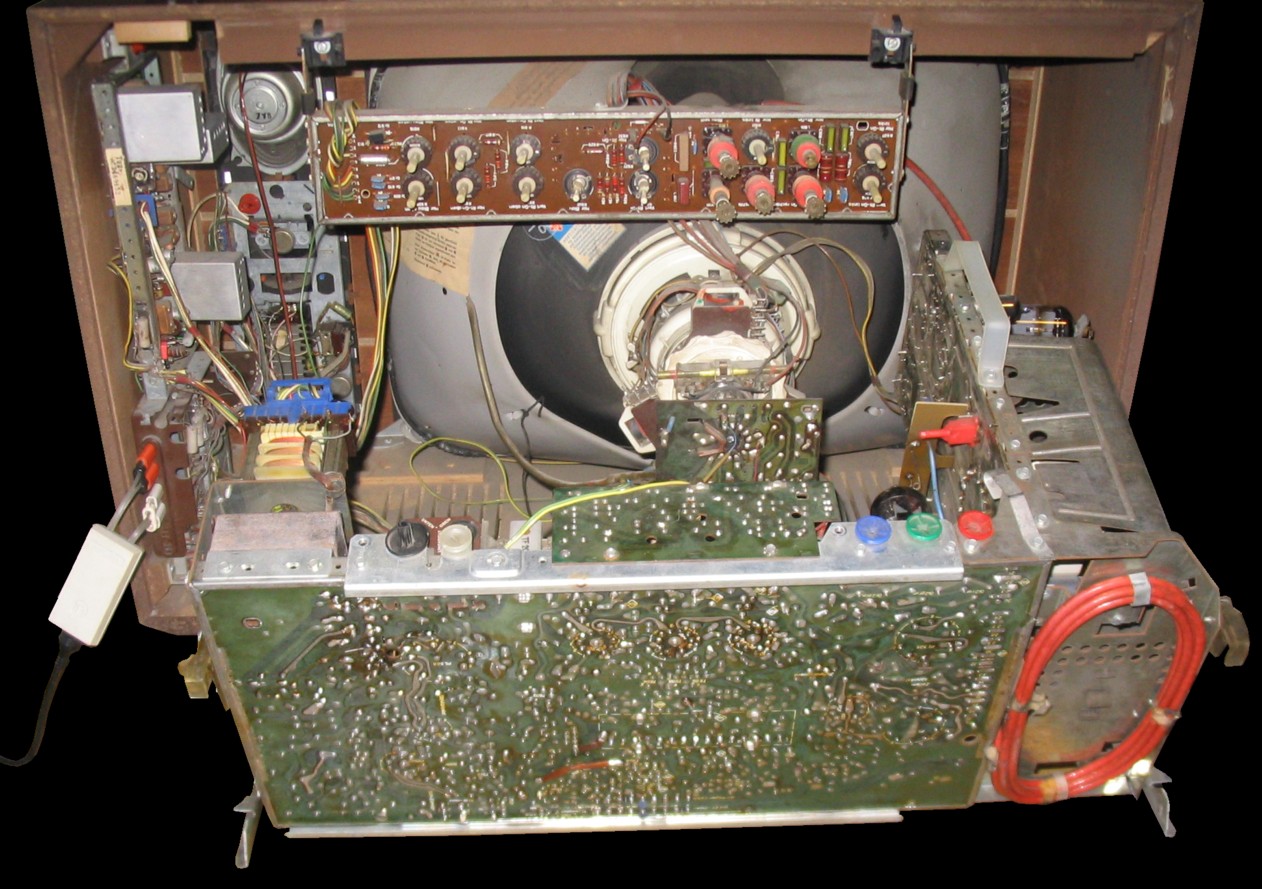 bösartige Stromschläge geschehen können. Insbesondere die Bildröhre und die mit ihr verbundenen Baugruppen können noch Stunden oder Tage nach der letzten Inbetriebnahme weit über 10.000 Volt Hochspannung führen.