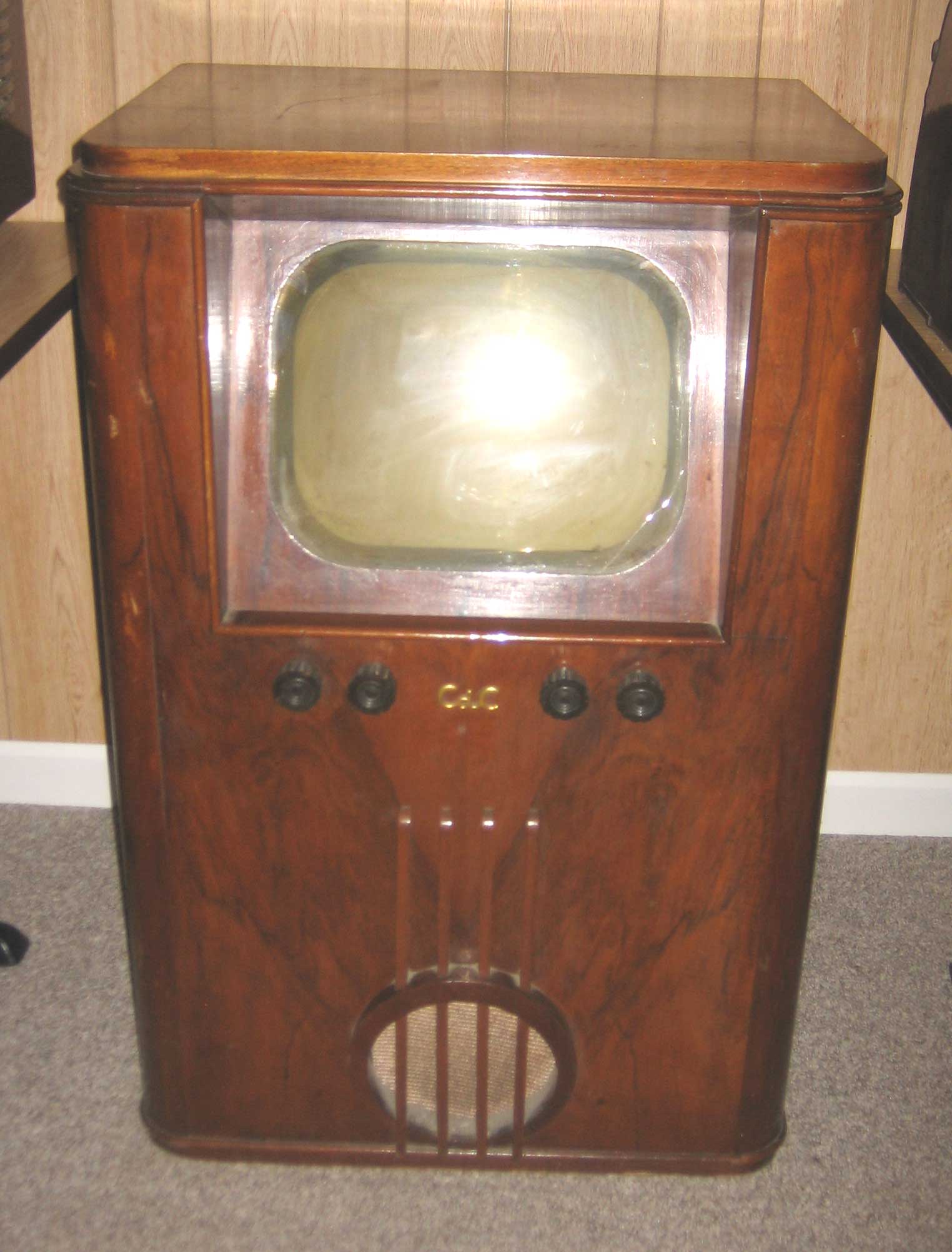 Recently another collector reported that he had a TV-49. He sent a photo of the identification plate on the back of his set that showed a serial number of 570. Our set's plate has a serial number of 562. Our set has 1949 dates stamped on the electrolytic capacitors, indicating that the set was made in 1949. It is likely that Mr. Poinsignon was confusing our set with an earlier prototype, which was probably in a similar cabinet. Ours appears to be a production set rather than a prototype. ![]() A 1945 picture of a similar set Courtesy of Jerome Halphen