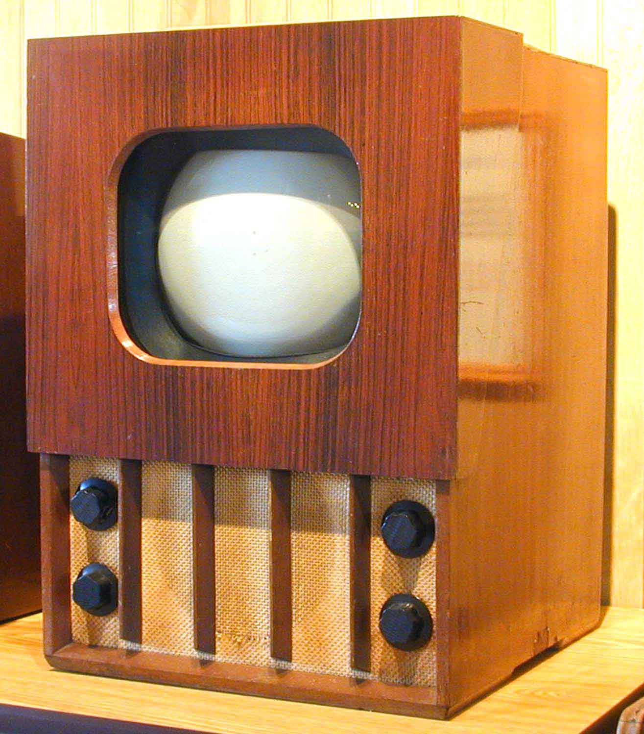 Postwar Television Murphy V114(click on picture for high resolution image) This was one of only a few sets made in England in 1946. It tunes only one channel, and has a nine inch screen. The design is similar to an early electronic set. This set is now restored and working. Here is a sales brochure. |