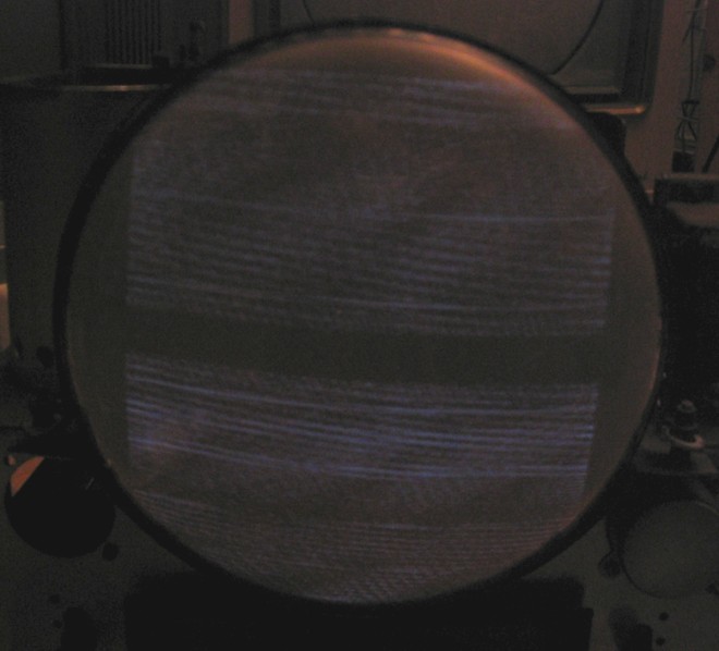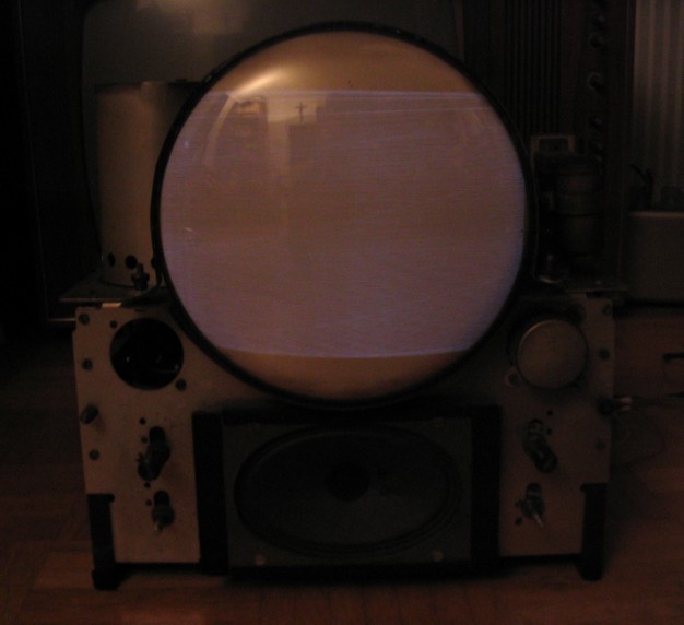 regsitered. After that I did a first test and fired up the set. Some whistling indicated that the line oscillator worked. On the screen, a small dim horizontal line appeared which was only